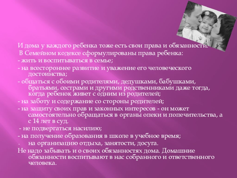 Слайд 10И дома у каждого ребенка тоже есть свои права и обязанности.