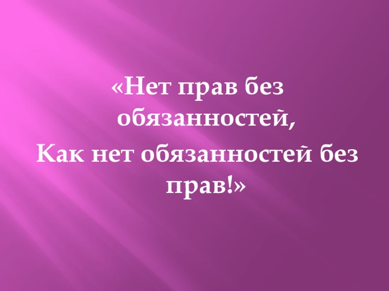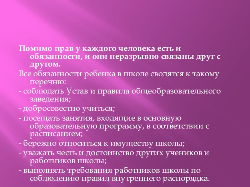 Слайд 9Помимо прав у каждого человека есть и обязанности, и они неразрывно