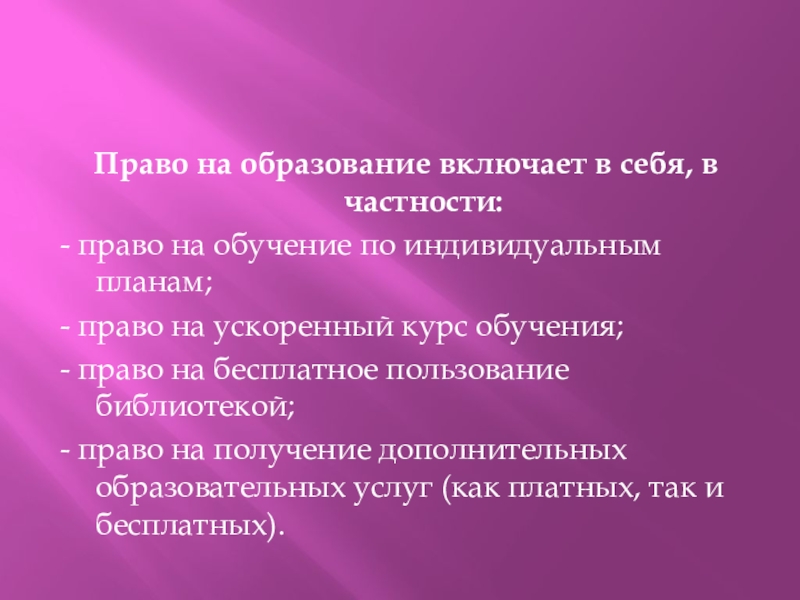 - право на получение дополнительных образовательных услуг (как платных, так и бесплатных).