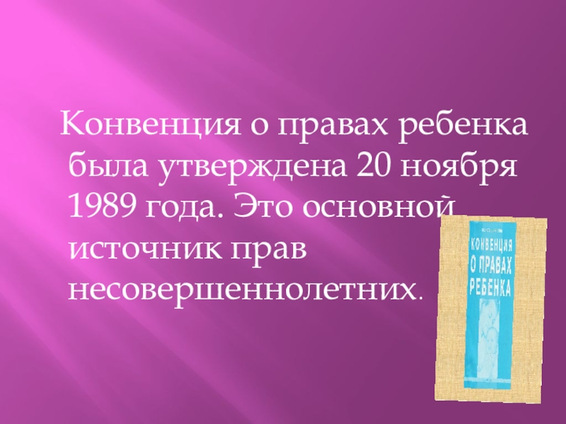 Слайд 4 Конвенция о правах ребенка была утверждена 20 ноября 1989 года.