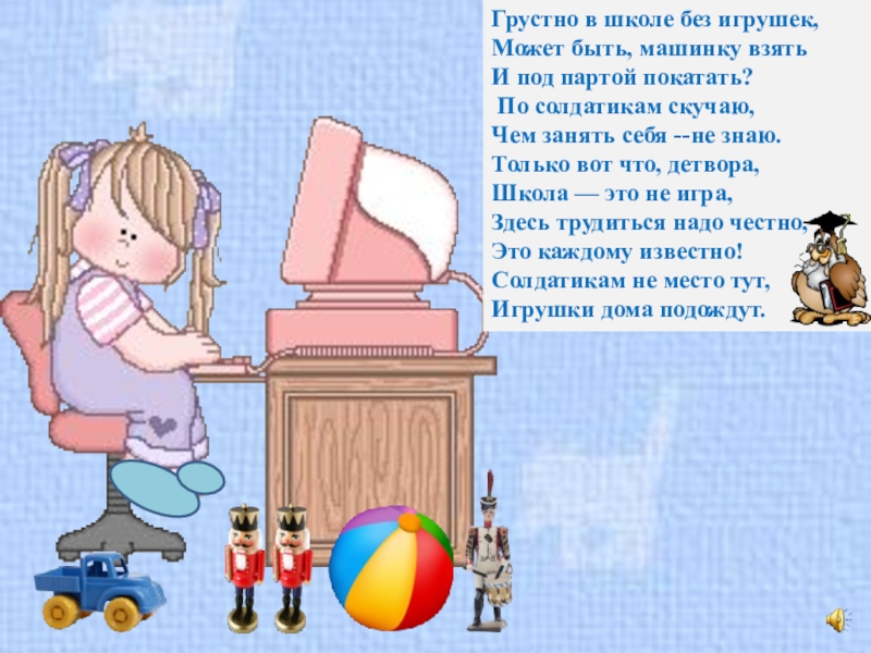 Слайд 11Грустно в школе без игрушек,