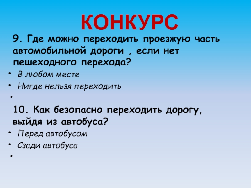10. Как безопасно переходить дорогу, выйдя из автобуса?