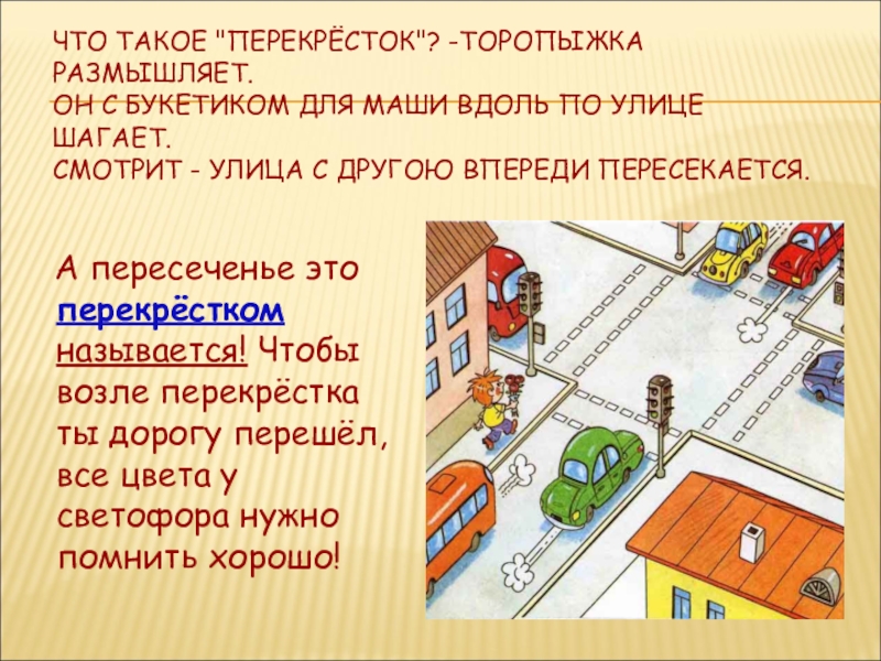 А пересеченье это перекрёстком называется! Чтобы возле перекрёстка ты дорогу перешёл,
