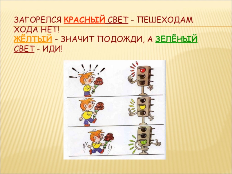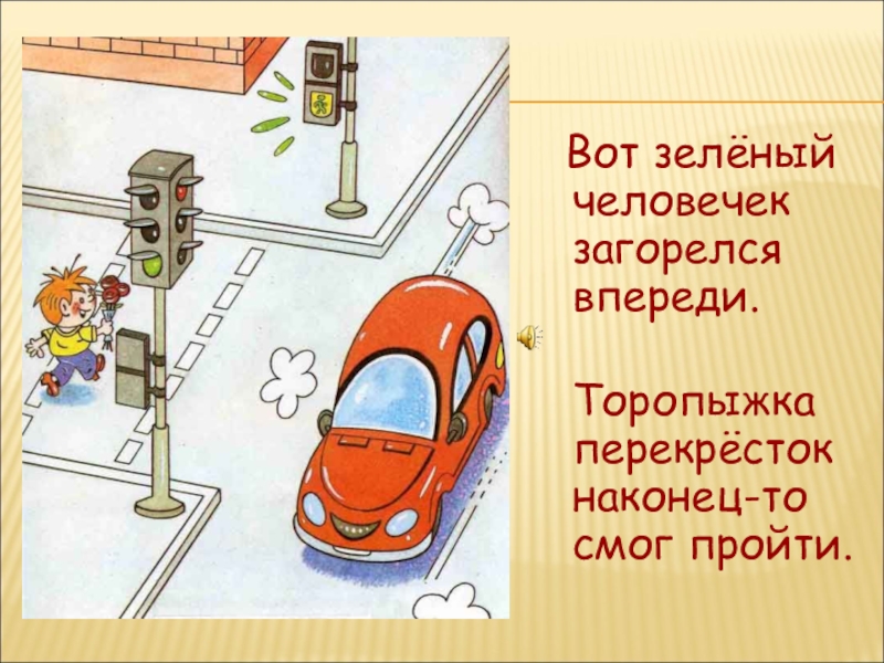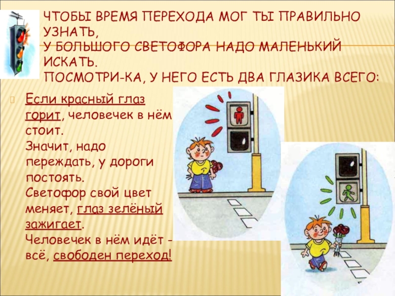 Светофор свой цвет меняет, глаз зелёный зажигает.