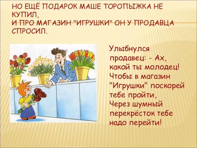 Улыбнулся продавец: - Ах, какой ты молодец!