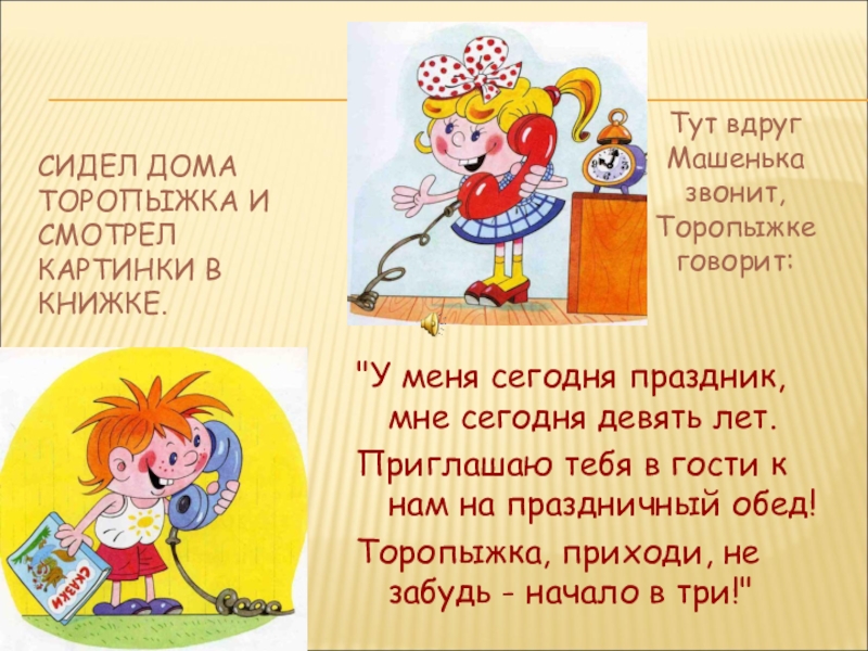 Тут вдруг Машенька звонит, Торопыжке говорит: