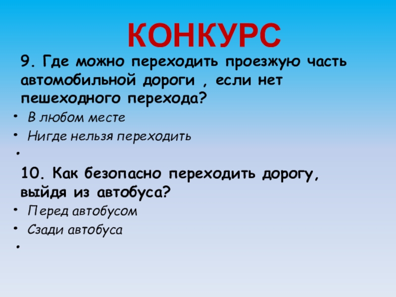 10. Как безопасно переходить дорогу, выйдя из автобуса?
