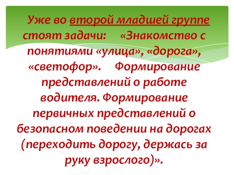 Слайд 3 Уже во второй младшей группе стоят задачи: