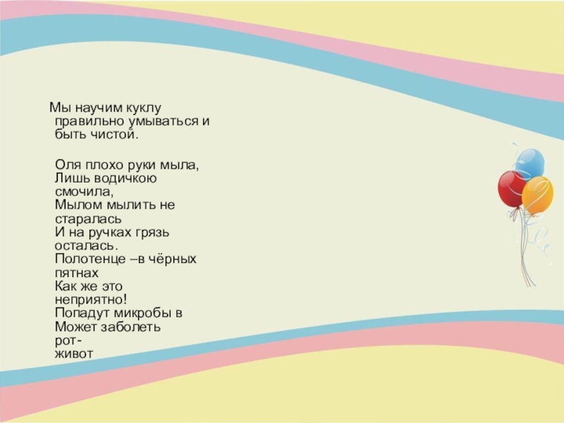Е. Благинина «С добрым утром», «Мы пускаем пузыри»;
