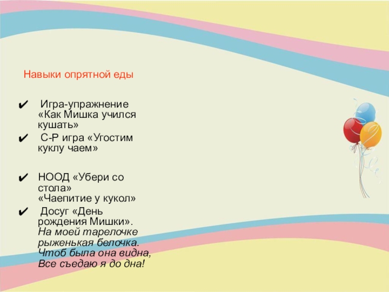 C. Капутикян «Хлюп-хлюп», «Маша обедает»;