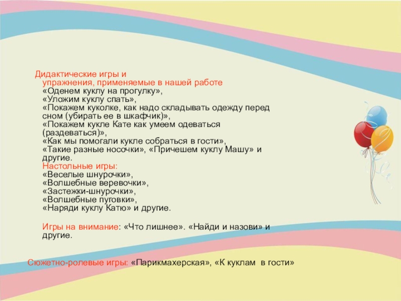 «Такие разные носочки», «Причешем куклу Машу» и