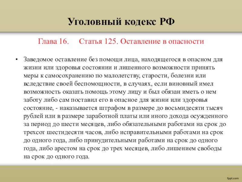 Глава 16. Статья 125. Оставление в опасности