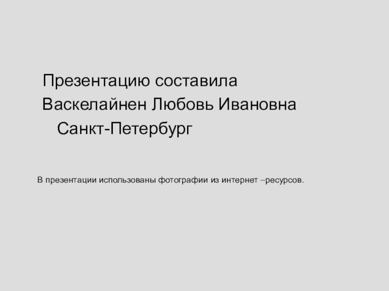 Презентацию составила   Васкелайнен Любовь Ивановна    Санкт-Петербург  В презентации использованы