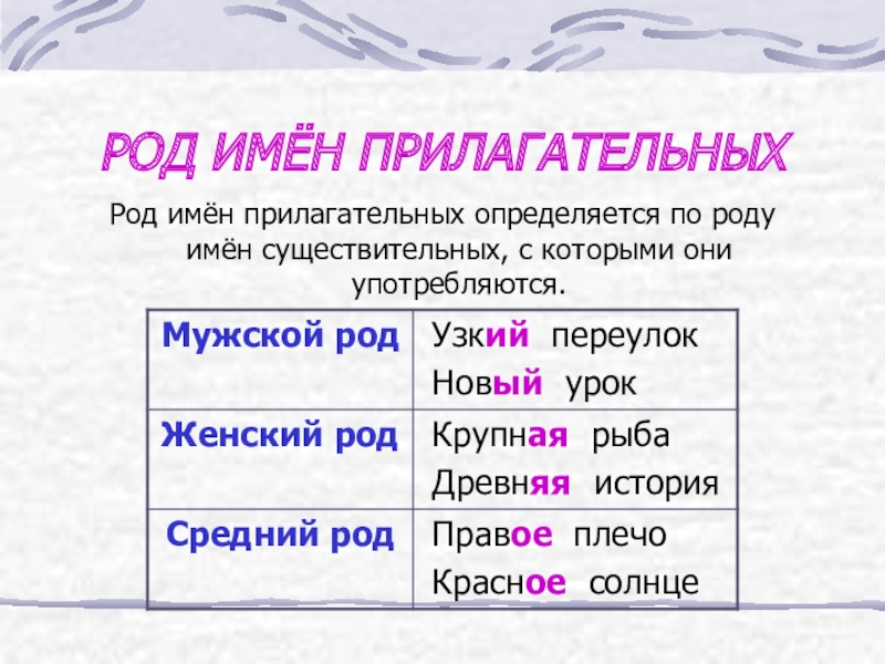 Слайд 18РОД ИМЁН ПРИЛАГАТЕЛЬНЫХ