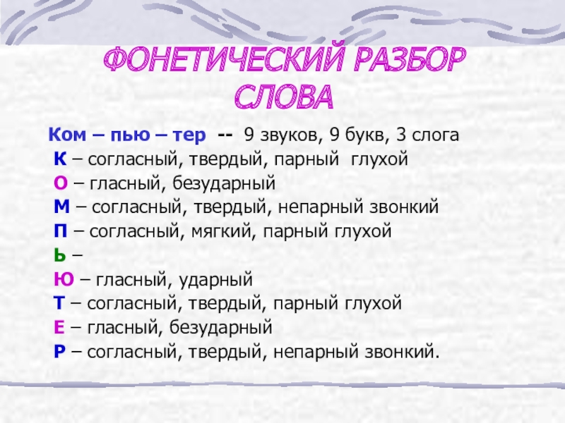 Слайд 5ФОНЕТИЧЕСКИЙ РАЗБОР СЛОВА