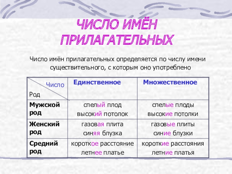 Слайд 19ЧИСЛО ИМЁН ПРИЛАГАТЕЛЬНЫХ
