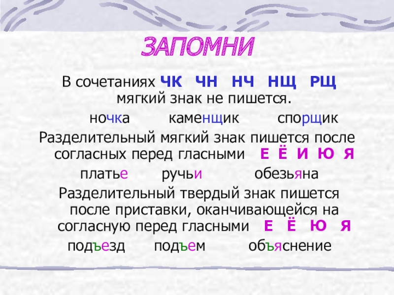Разделительный мягкий знак пишется после согласных перед гласными Е Ё И Ю Я