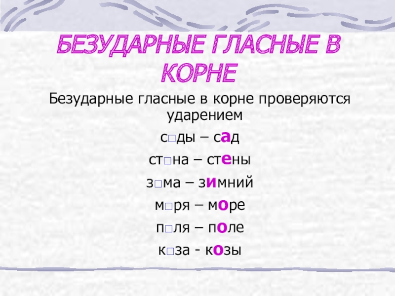 Слайд 7БЕЗУДАРНЫЕ ГЛАСНЫЕ В КОРНЕ