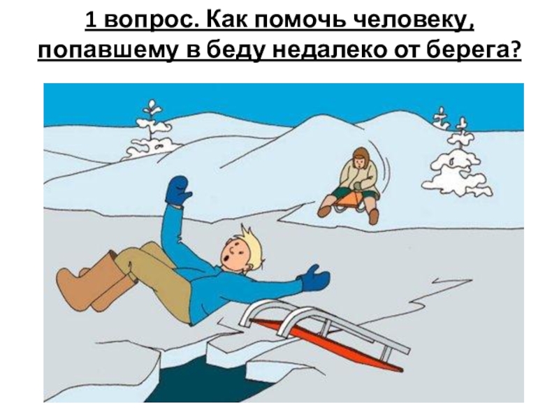Слайд 4 1 вопрос. Как помочь человеку, попавшему в беду недалеко от берега?