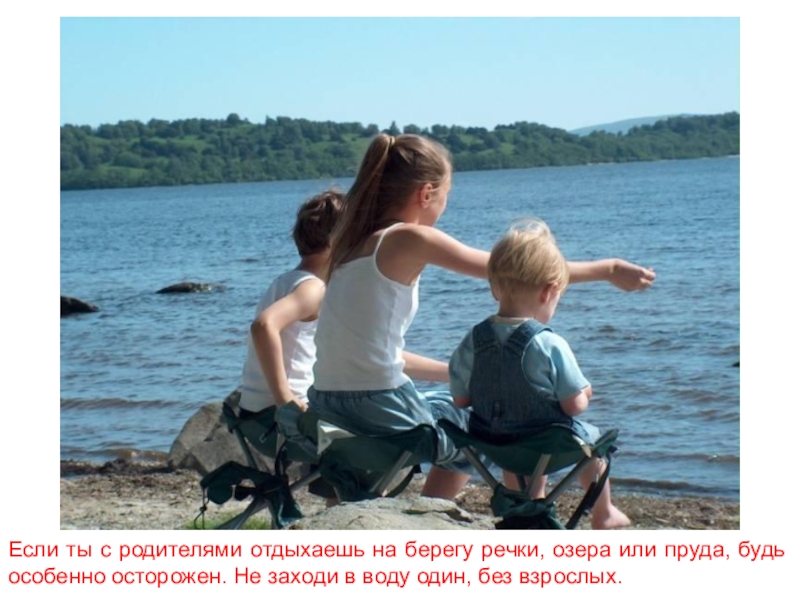 Слайд 20Если ты с родителями отдыхаешь на берегу речки, озера или пруда,