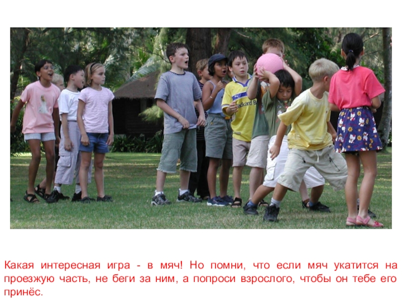 Слайд 16Какая интересная игра - в мяч! Но помни, что если мяч