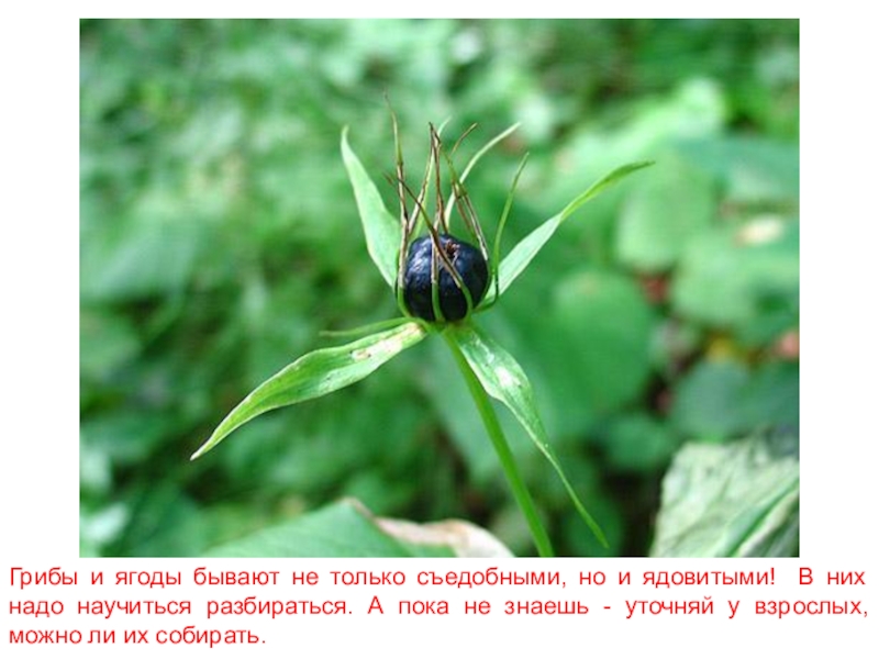 Слайд 27Грибы и ягоды бывают не только съедобными, но и ядовитыми! В