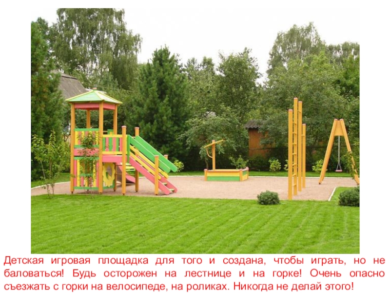 Слайд 13Детская игровая площадка для того и создана, чтобы играть, но не