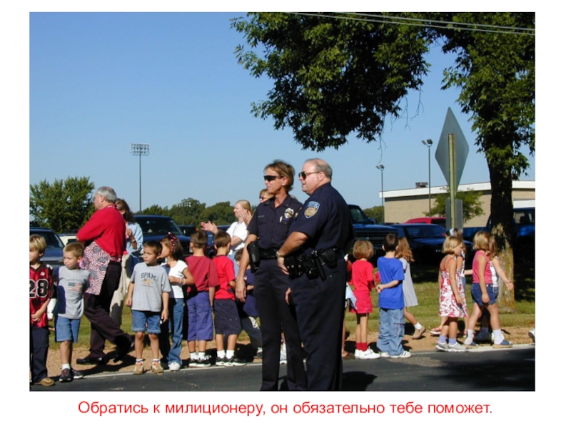 Слайд 38Обратись к милиционеру, он обязательно тебе поможет.