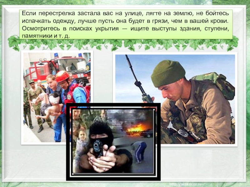 Слайд 7Если перестрелка застала вас на улице, лягте на землю, не бойтесь