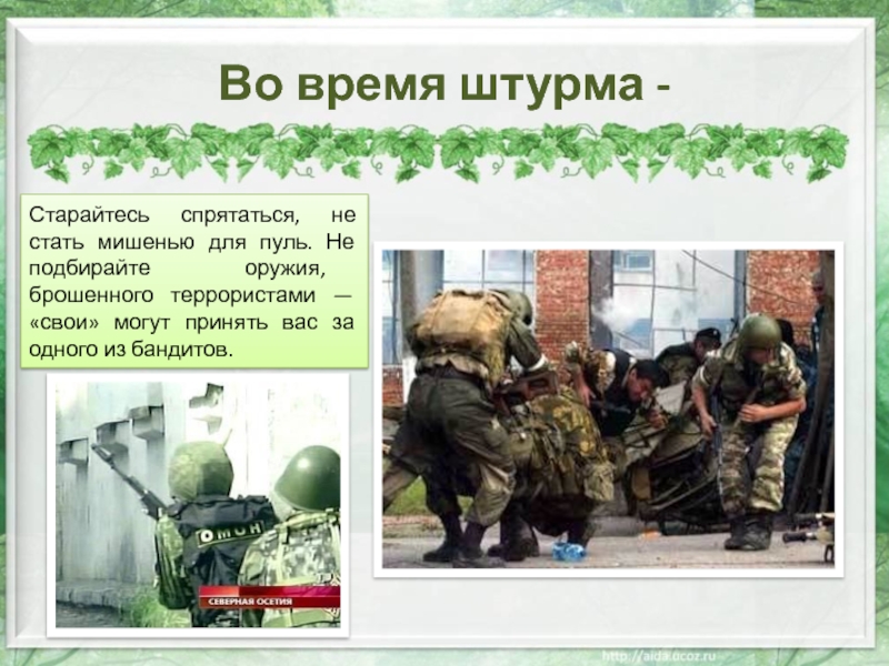 подбирайте оружия, брошенного террористами — «свои» могут принять вас за одного из бандитов.