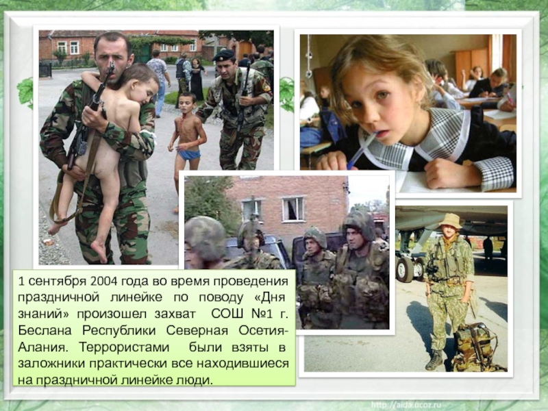 «Дня знаний» произошел захват СОШ №1 г.Беслана Республики Северная Осетия-Алания. Террористами были взяты в заложники практически все находившиеся на праздничной линейке люди.