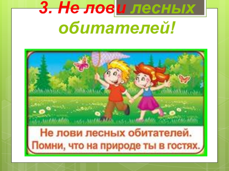 Слайд 43. Не лови лесных обитателей!