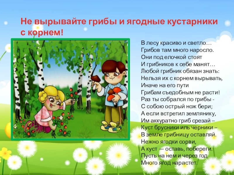 Не вырывайте грибы и ягодные кустарники с корнем!