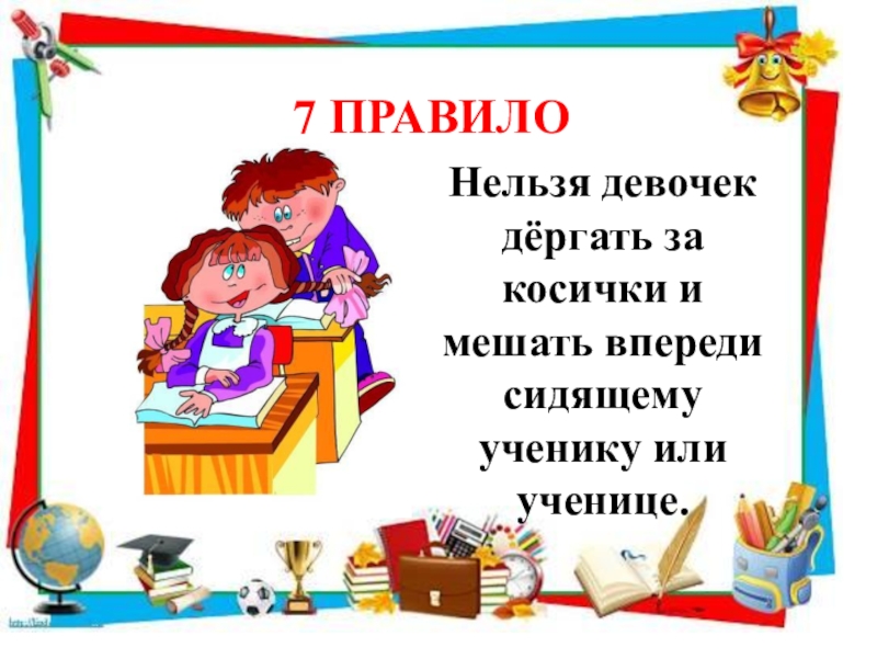 7 ПРАВИЛО Нельзя девочек дёргать за косички и мешать впереди сидящему ученику или ученице.