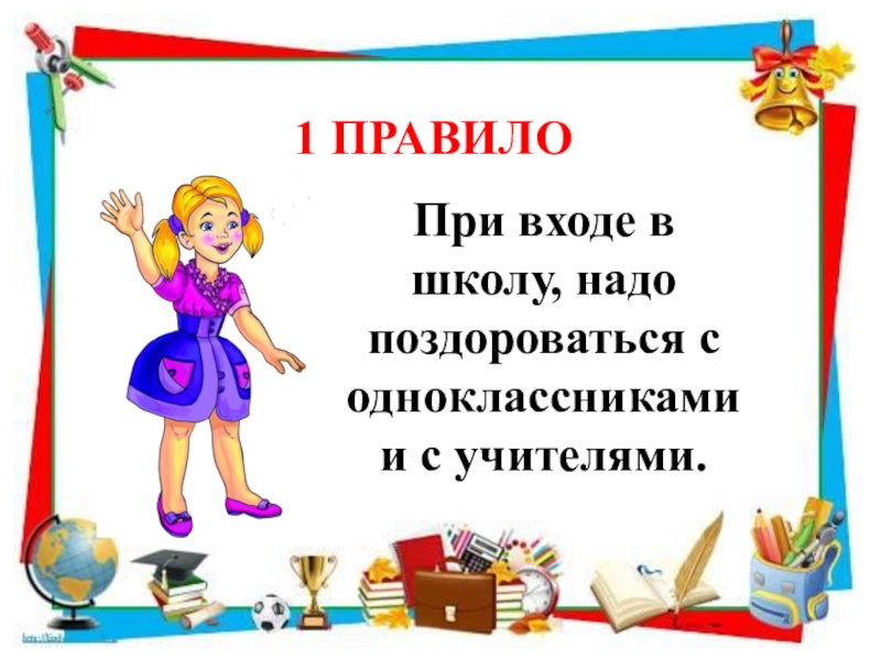 1 ПРАВИЛО При входе в школу, надо поздороваться с одноклассниками и с учителями.
