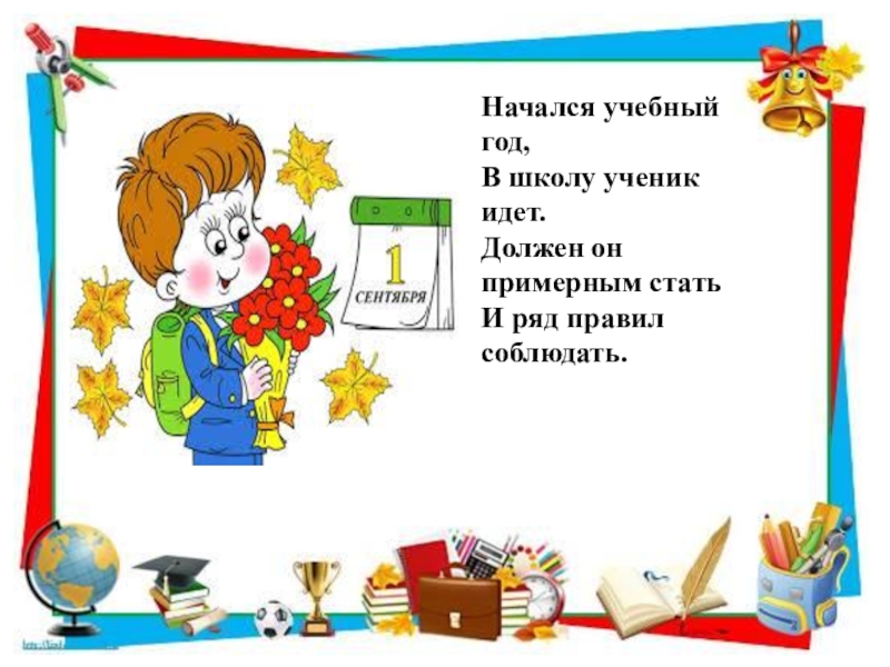 Начался учебный год, В школу ученик идет. Должен он примерным стать И ряд правил соблюдать.