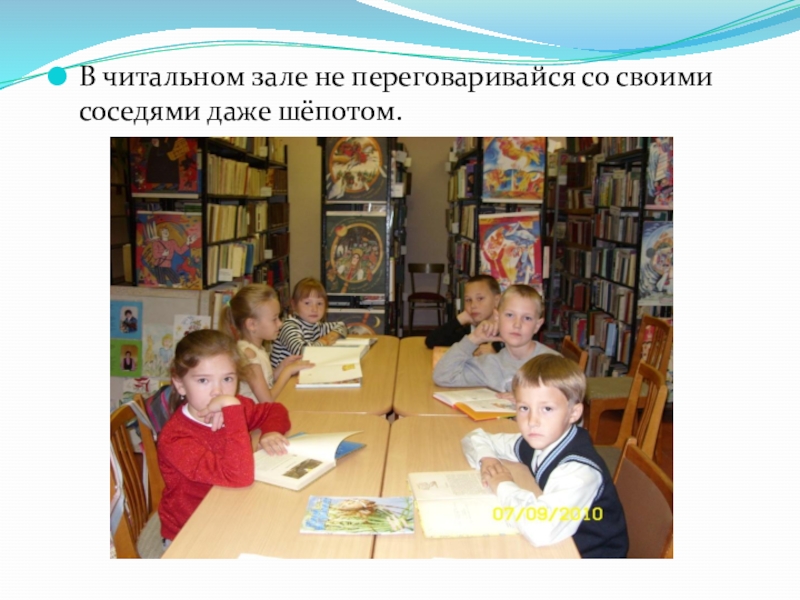 Слайд 46В читальном зале не переговаривайся со своими соседями даже шёпотом.