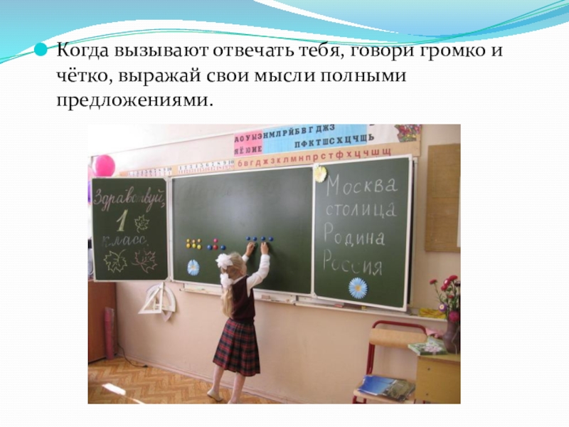 Слайд 19Когда вызывают отвечать тебя, говори громко и чётко, выражай свои мысли