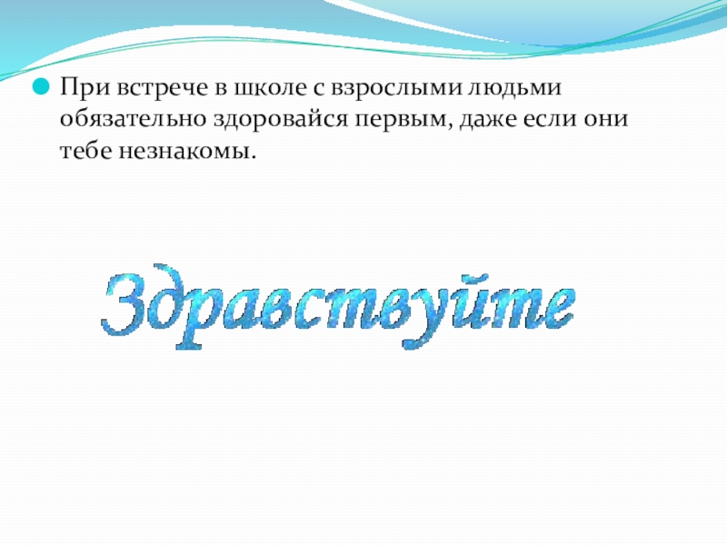 Слайд 26При встрече в школе с взрослыми людьми обязательно здоровайся первым, даже