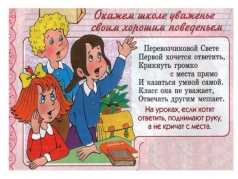 Слайд 17Если отвечает твой одноклассник, нельзя перебивать его ответ, подсказывать ему. Подними