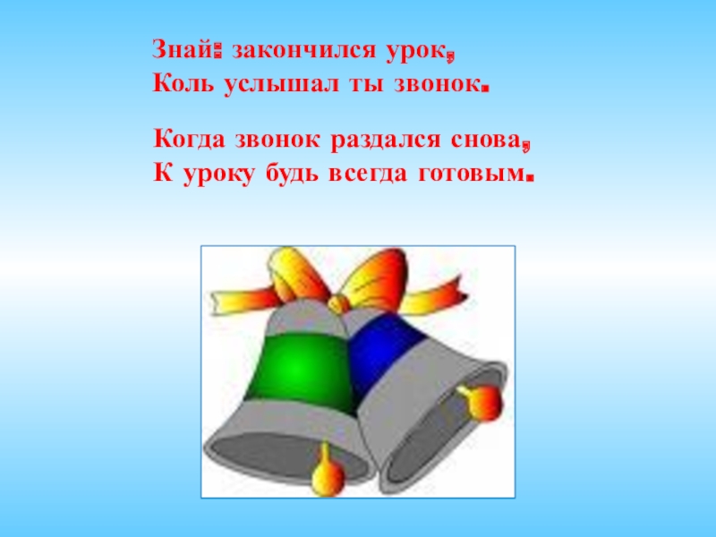 Слайд 12Знай: закончился урок,