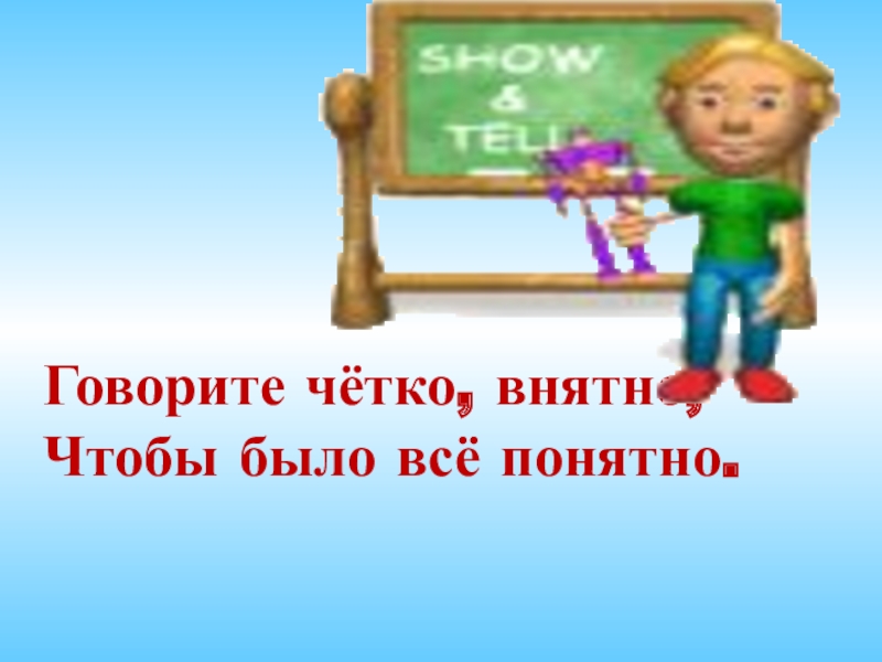 Слайд 10Говорите чётко, внятно,