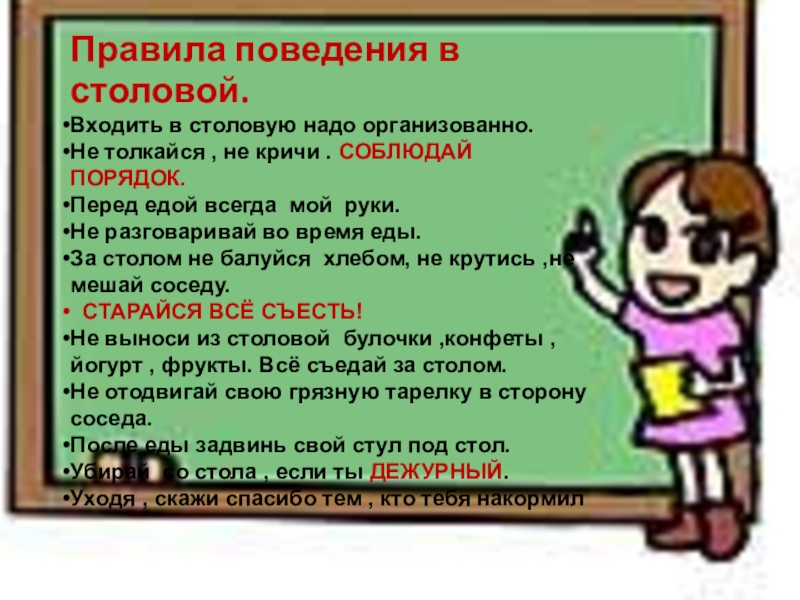 Слайд 18Правила поведения в столовой.