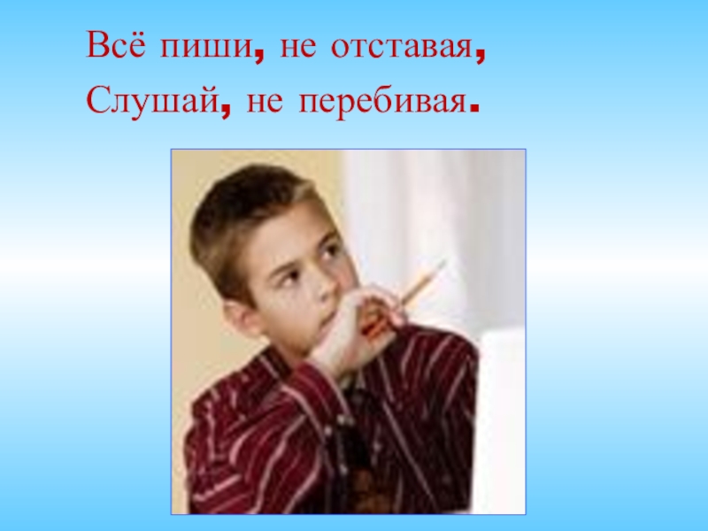 Слайд 9 Всё пиши, не отставая,