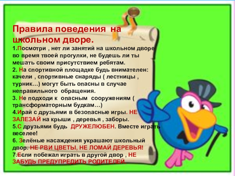 Слайд 21Правила поведения на школьном дворе.