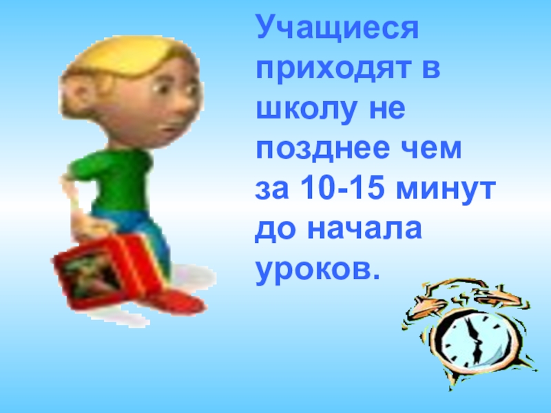 Слайд 3Учащиеся приходят в школу не позднее чем за 10-15