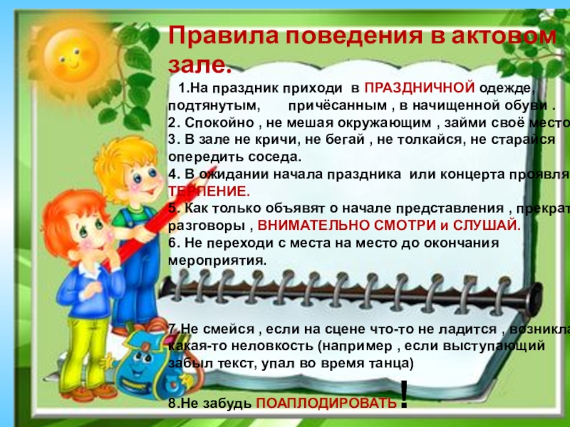 Слайд 20Правила поведения в актовом зале.