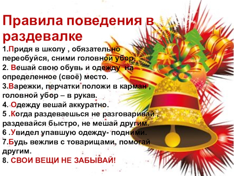 Слайд 6Правила поведения в раздевалке