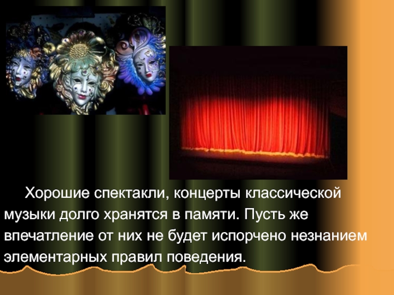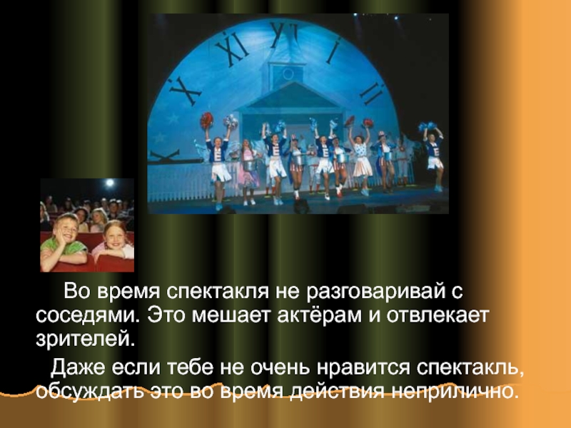 Слайд 10 Во время спектакля не разговаривай с соседями.