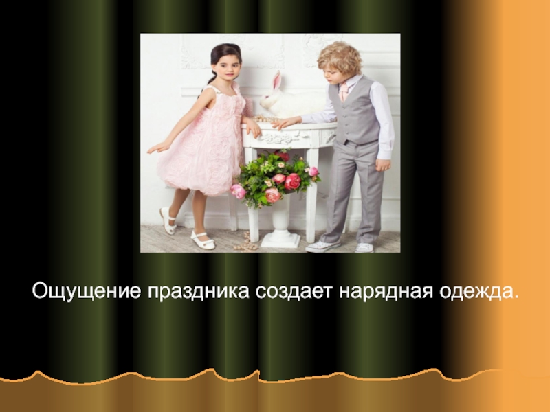 Слайд 4 Ощущение праздника создает нарядная одежда.